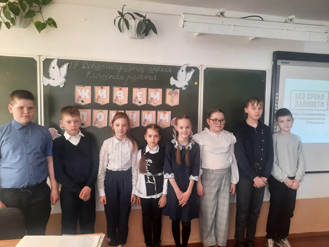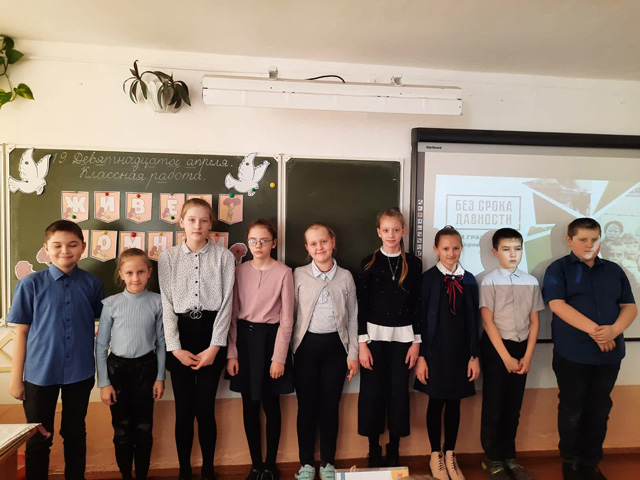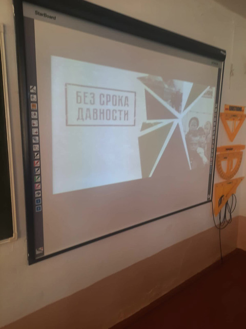 Кроме этого, был проведён Мультимедийный квест ‘»Без срока давности». А учащиеся 10-11 классов в актовом зале посмотрели документальный фильм » Без срока давности. До последнего имени»