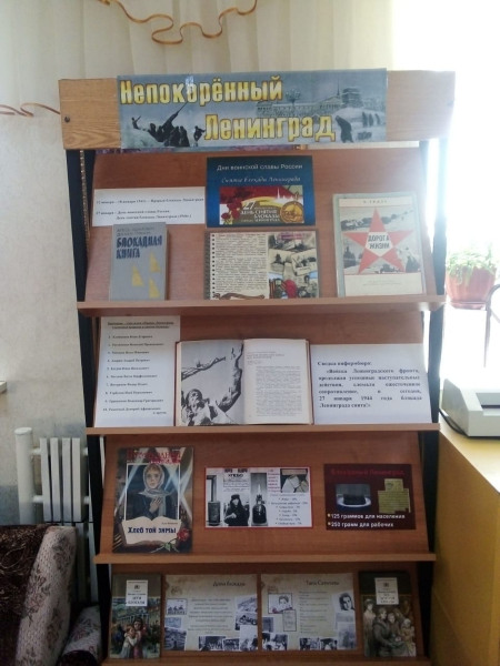 К этой памятной дате в нашей школе проведены классные часы, в школьной библиотеке организована выставка «Непокоренный Ленинград». Они были посвящены подвигу советских людей в Великой Отечественной войне против фашистских захватчиков. Из бесед, проведенных у книжной выставки более 120 учащихся узнали о том, что такое «Дорога жизни» и какое значение она имела, о норме блокадного хлеба в Ленинграде. Особое внимание было уделено судьбам детей-ленинградцев, переживших блокаду вместе со взролыми, об их неоценимом вкладе в общее дело Победы.