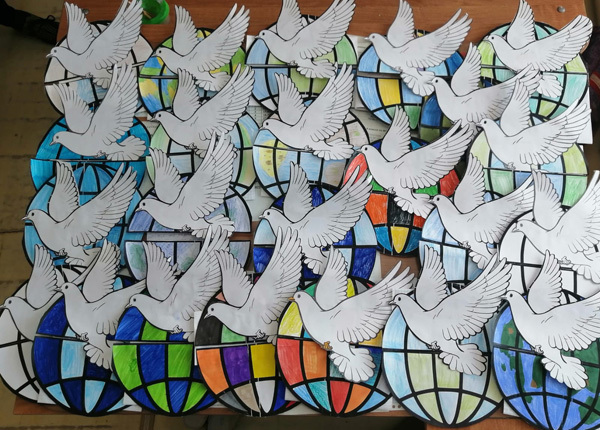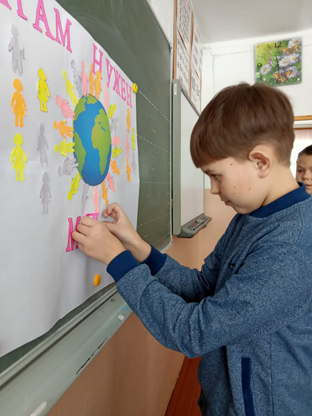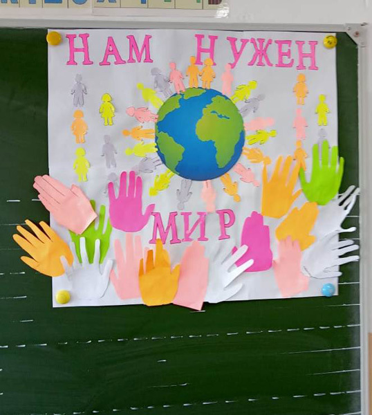 — Акцией «Мы за мир». Ребята поддержали детей Донбасса, которые не знают жизни без звуков войны.