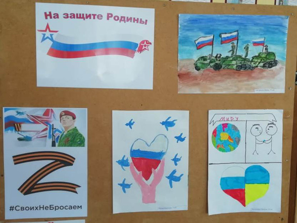 — Проведена Акция «На защите Родины». Выставка детских рисунков. Ребята рисовали рисунки, посвящая их вооружённым силам РФ