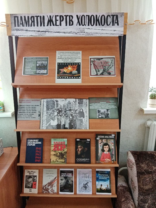 В преддверии этой даты в школьной библиотеке организована выставка «Памяти жертв холокоста».