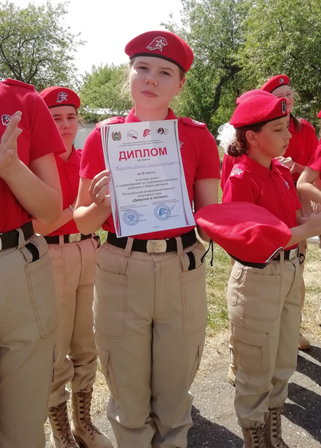 3 место — Каргина Полина заняла 3 место в соревнованиях «Снаряжение магазина, разборка и сборка автомата».