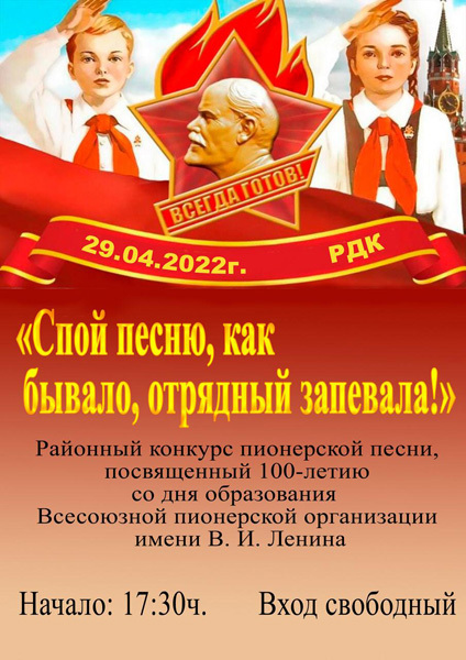 29 апреля состоялся Районный конкурс пионерской песни, посвященный 100-летию Пионерской организации «Спой песню, как бывало, отрядный запевала!».