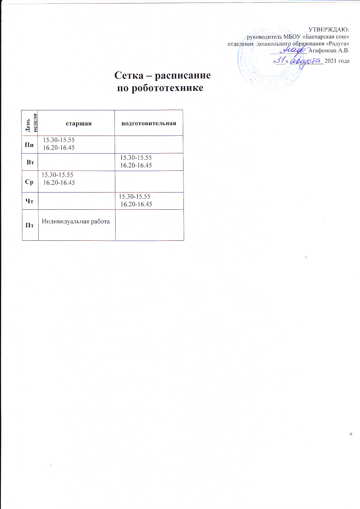 - Сетка-расписание по робототехнике