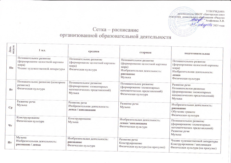Сетка-расписание организованной образовательной деятельности