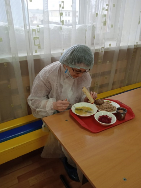 Членами комиссии была снята проба с блюд (борщ, перловка, котлета из птиц с маслом).