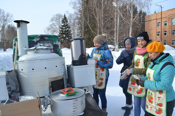 Полевая кухня, организованная, заместителем директора по АХЧ МБОУ «Бакчарская СОШ» Рузайкиным Евгением Васильевичем и заведующей школьной столовой Богомоловой Натальей Олеговной не оставило равнодушными участников перехода и жителей села Бакчар.