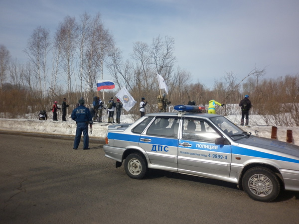 Во время перехода сотрудники отделения ГИБДД ОМВД по Бакчарскому району обеспечивали безопасный переход через транспортные магистрали.